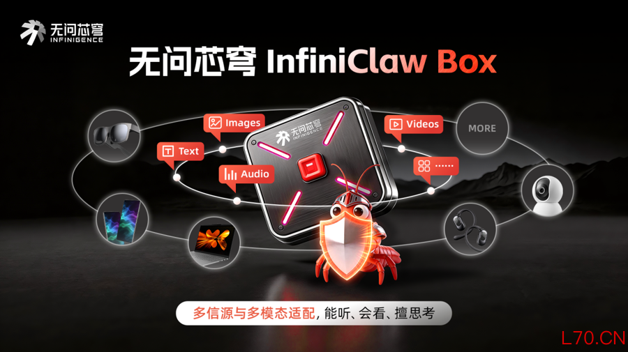 凭借独特的全模态脱敏能力,InfiniClaw Box突破了大多数龙虾盒子仅能读取文本知识库的局限。它支持多种硬件设备的灵活组合,能够广泛接入并融合多元信源:可连接家庭摄像头、智能门锁等设备实时获取视频画面,也可以通过外接麦克风精准接收语音指令。未来InfiniClaw Box还可无缝接入个人电脑、智能眼镜、手机、平板等移动生产力工具,实现文本、图像、语音、视频等多种模态信号的协同处理与复杂任务的跨模态执行,提供标准化开放接口,支持更多场景下的生产力安全提效与功能拓展。