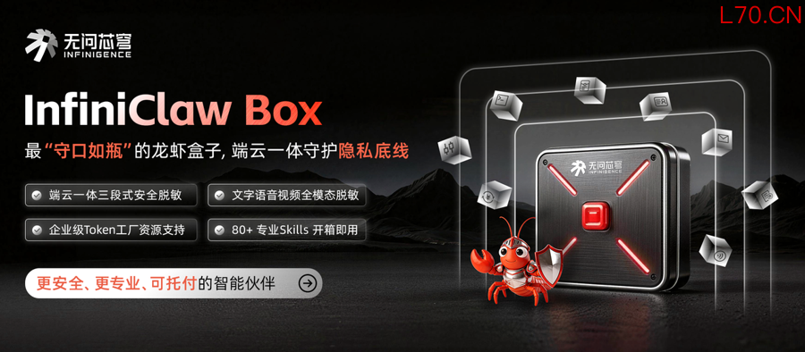 InfiniClaw Box直击本地龙虾在模型成本、性能与隐私之间难以兼顾的核心难题,独创了“本地脱敏—云端处理—本地回填”的端云一体三段式安全脱敏推理方案,实现了真正意义上的隐私数据绝不上云。