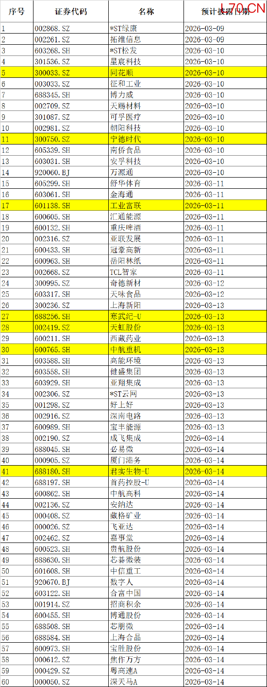 未来一周,多家公司财报密集出炉。A股方面,宁德时代、寒武纪、工业富联、长春高新、同花顺等相继公布业绩。