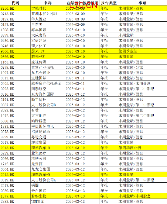 港美股方面,甲骨文、理想汽车、蔚来、慧与科技、满帮、富途控股、宝马、BioNTech、戴姆勒卡车控股、达乐公司、港铁公司、保时捷、大众汽车、深南电路等财报来袭。
