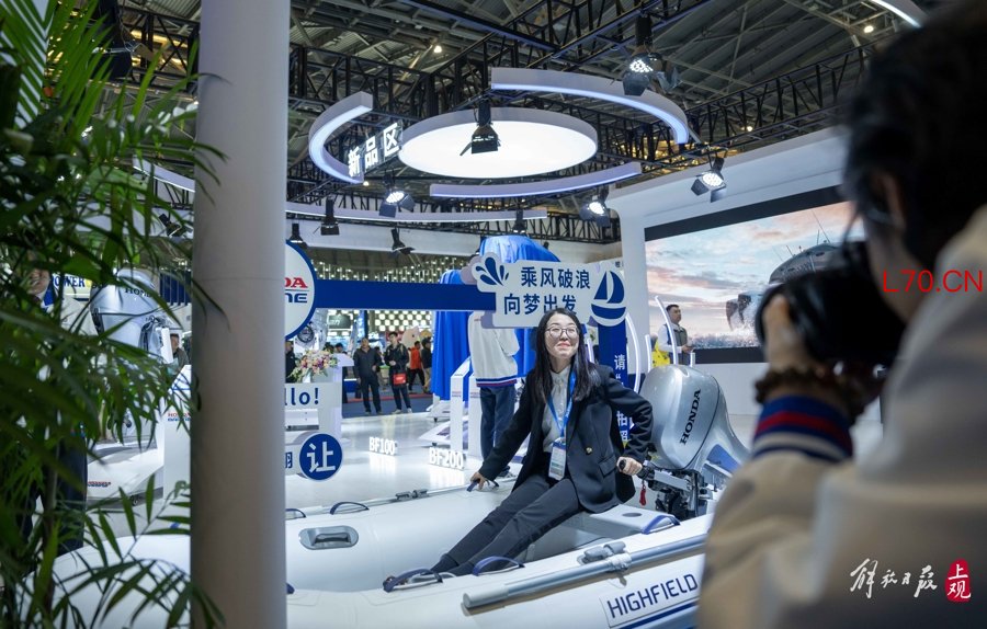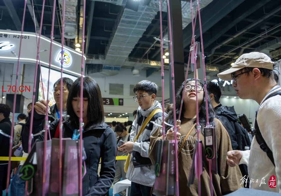 渔具展区吸引了众多年轻人。