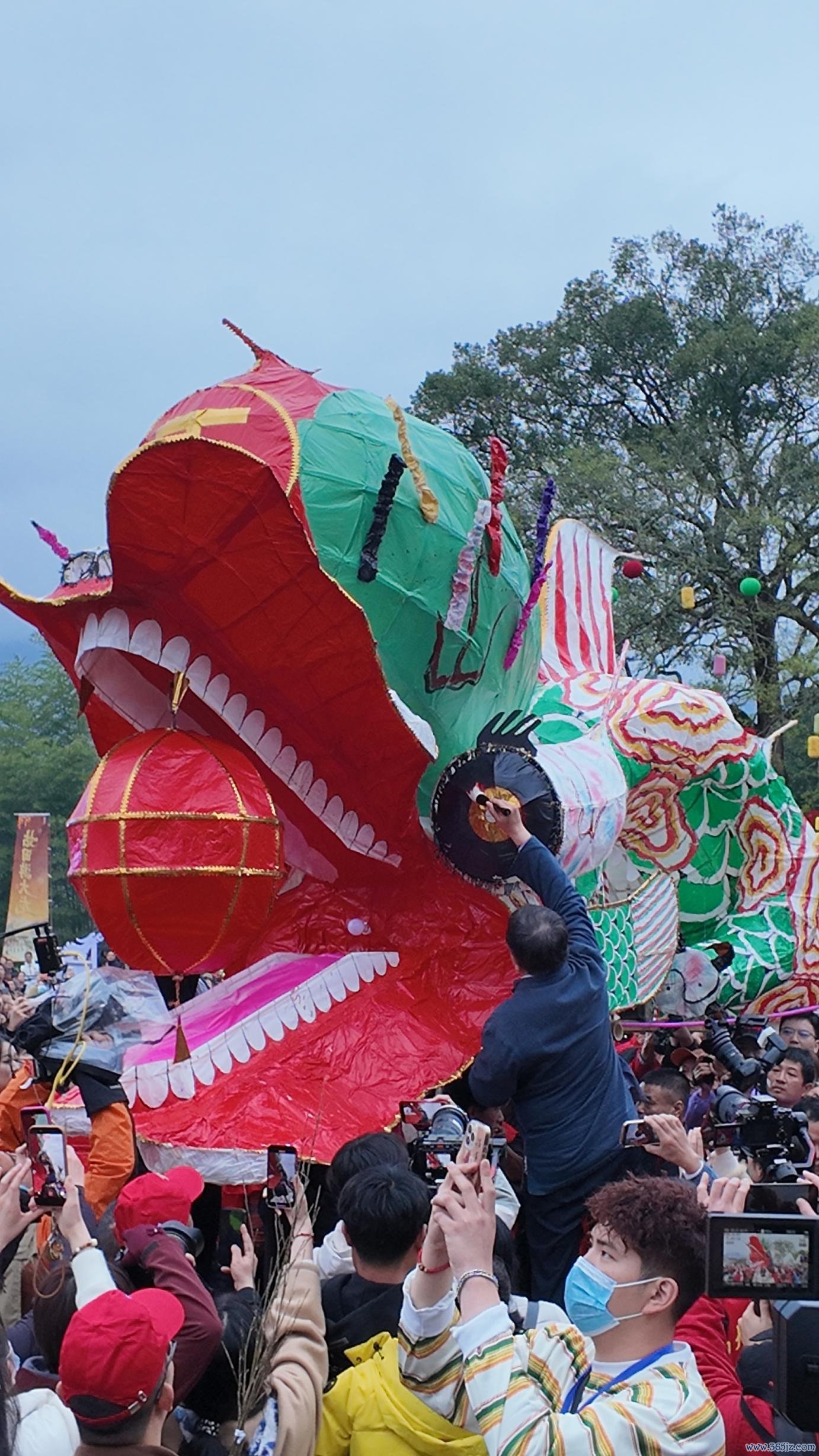 大龙在镇上走街串巷,焰火与灯光赶走夜色,家家户户上街共庆元宵