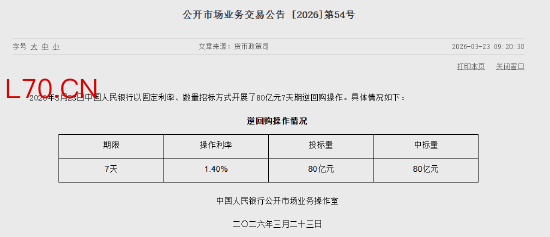 央行今日开展80亿元7天期逆回购操作