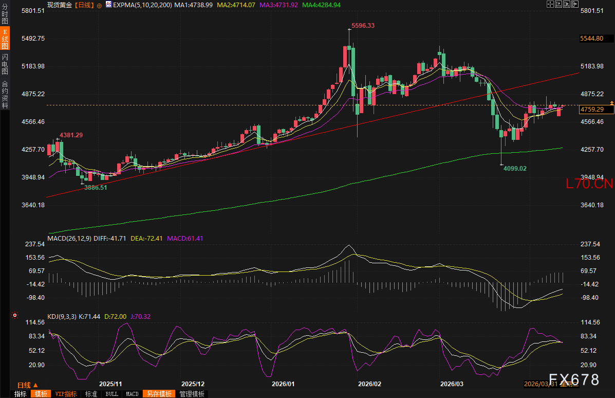 (现货黄金日线图,来源:易汇通)北京时间07:53,现货黄金现报4758.32美元/盎司。
