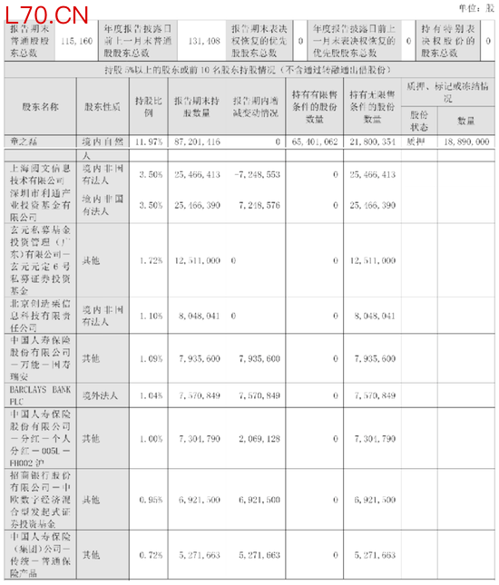 北京创造栗信息科技有限责任公司持股1.1%,中国人寿保险股份有限公司-万能-国寿瑞安持股1.09%,BARCLAYS BANK持股1.04%,中国人寿保险股份有限公司-分红-个人分红- 005L -FH002 沪持股1%,招商银行股份有限公司-中欧数字经济混合型发起式证券投资基金持股0.95%,中国人寿保险(集团)公司-传统-普通保险产品持股0.72%。