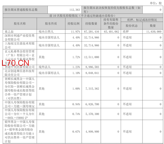 截至2025年12月31日,中文在线实控人童之磊持股为11.97%,上海阅文信息技术有限公司持股为3.5%,深圳市利通产业投资基金有限公司持股为3.5%,玄元私募基金投资管理(广东)有限公司-玄元元定 6 号私募证券投资基金持股为1.72%;